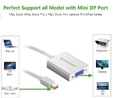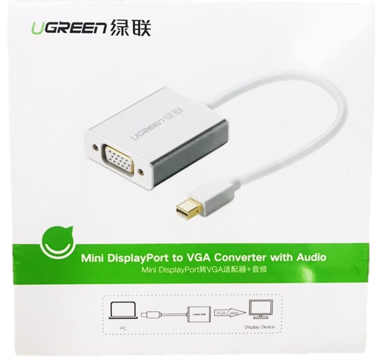 UGREEN 10437 Mini DisplayPort VGA (D-Sub) + 3.5 mm WHITE CABLE AND VIDEO ADAPTER